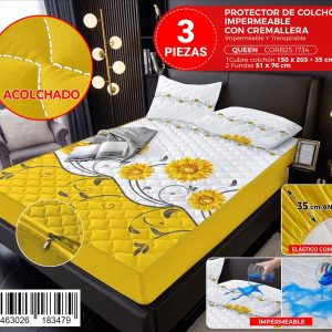 Protector de colchón estampado con zipper de 3 piezas Queen