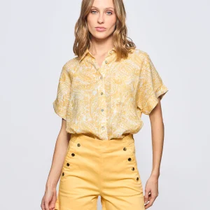 Camisa Manga Corta y Bolsillo Print Lino