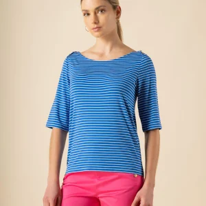 Polera Manga 3/4 Rayada Detalle Botones Hombro