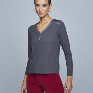 Polera Manga Larga Cuello V Rib Plano
