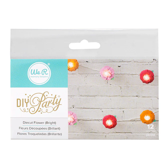 Flores troqueladas brillantes de color naranja, rosa, frambuesa y menta preparadas para plegar y pegar sobre tu hilo de luz.12 piezas