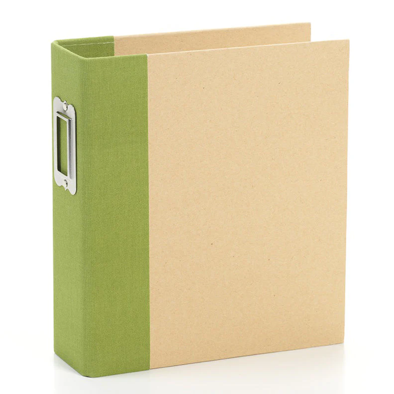 Album de fotos de 2 anillas de 6″ x 8″ (20 x 15 cm) en color craft con el lomo entelado en color verde.
