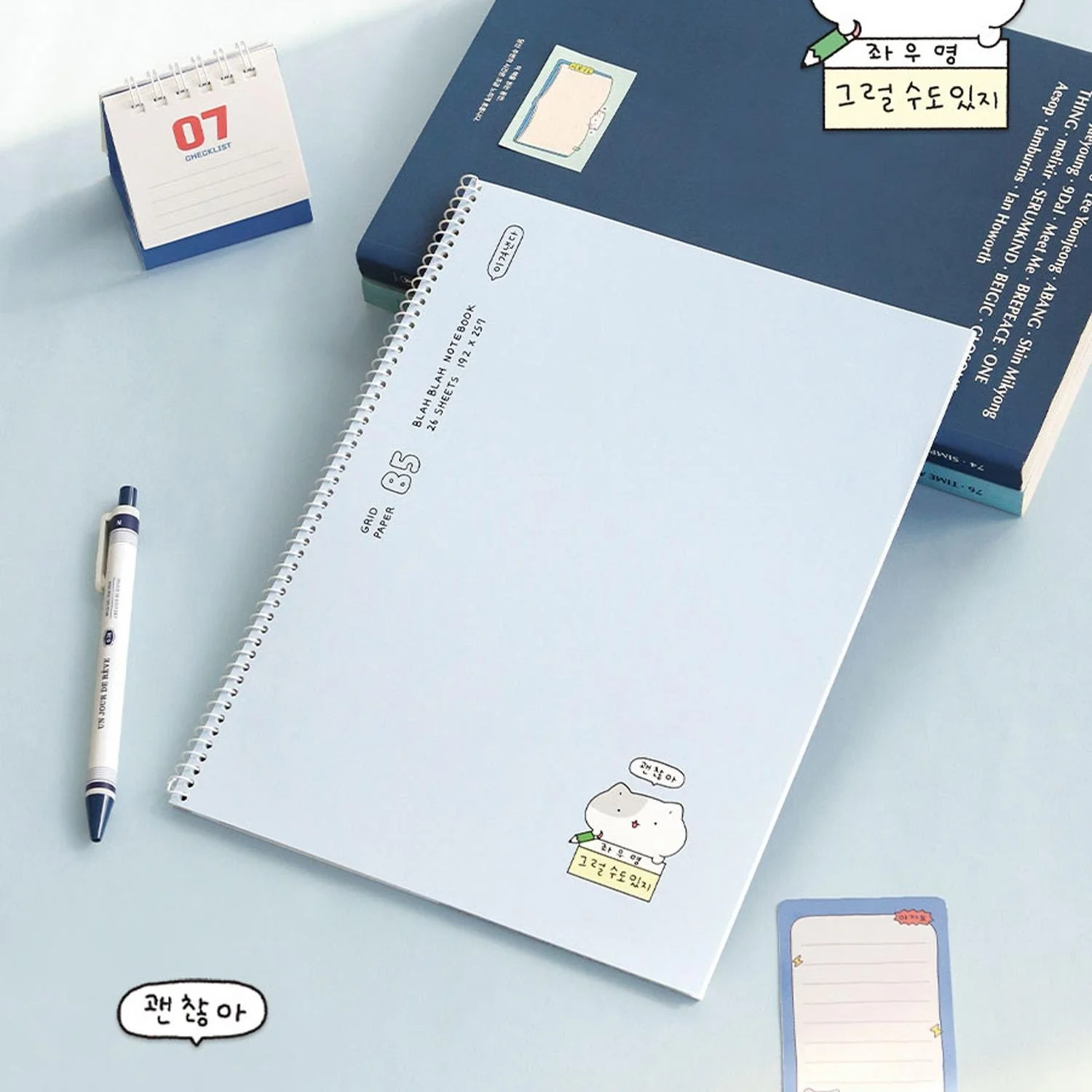 Cuaderno B5 con espiral y portadas ilustradas “Blah Blah” con hojas cuadriculadas.