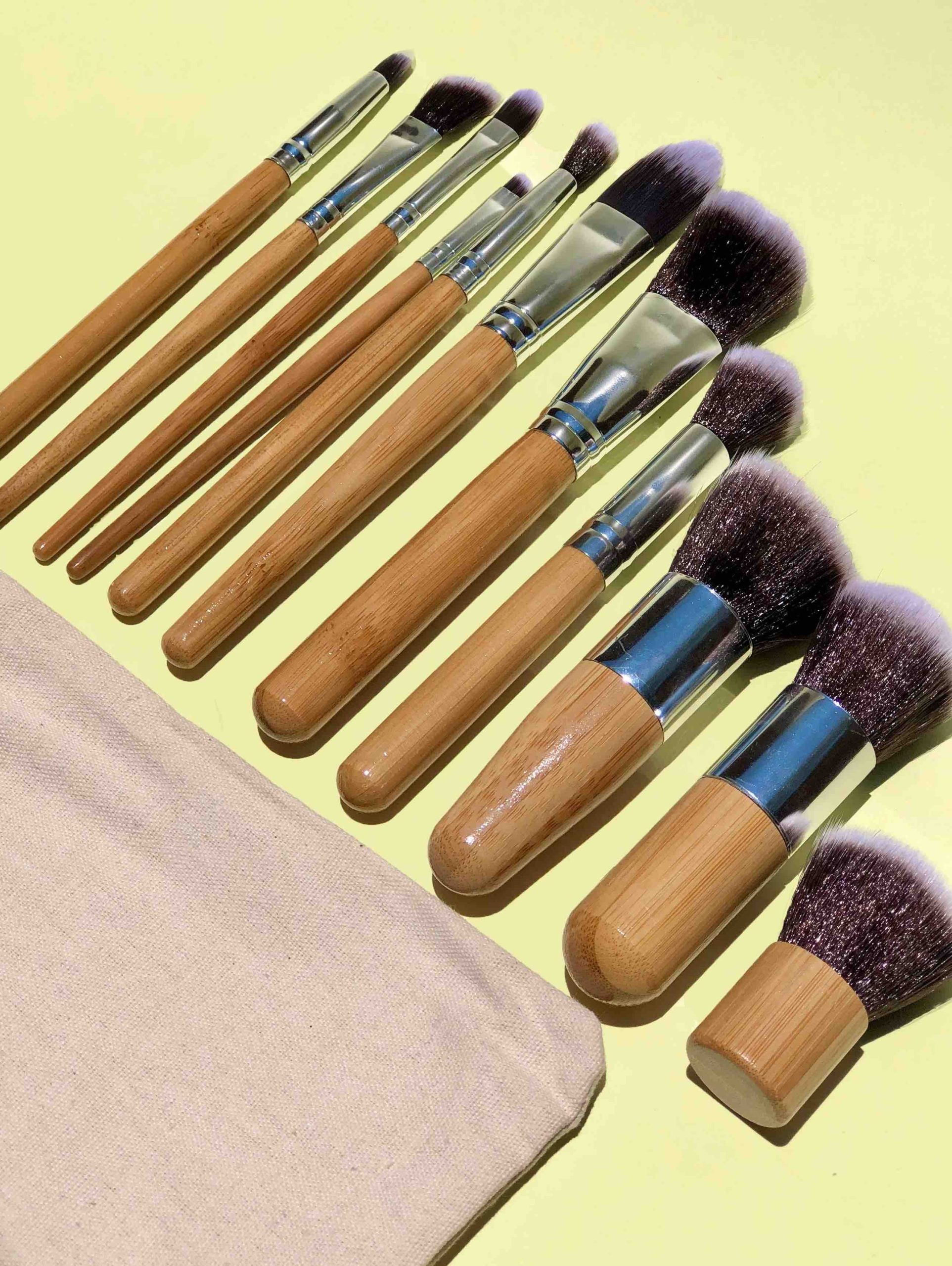 Incluye 11 brochas de bambú (6 de cara y 5 para ojos) + 1 bolsa de tela.