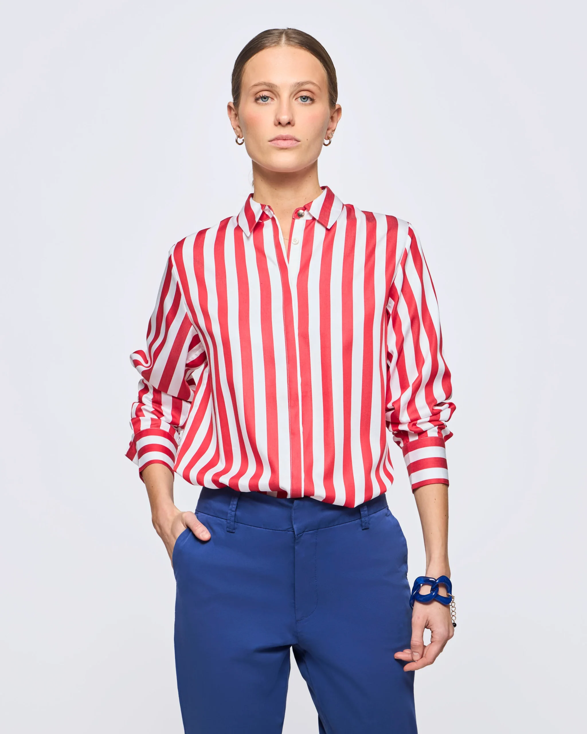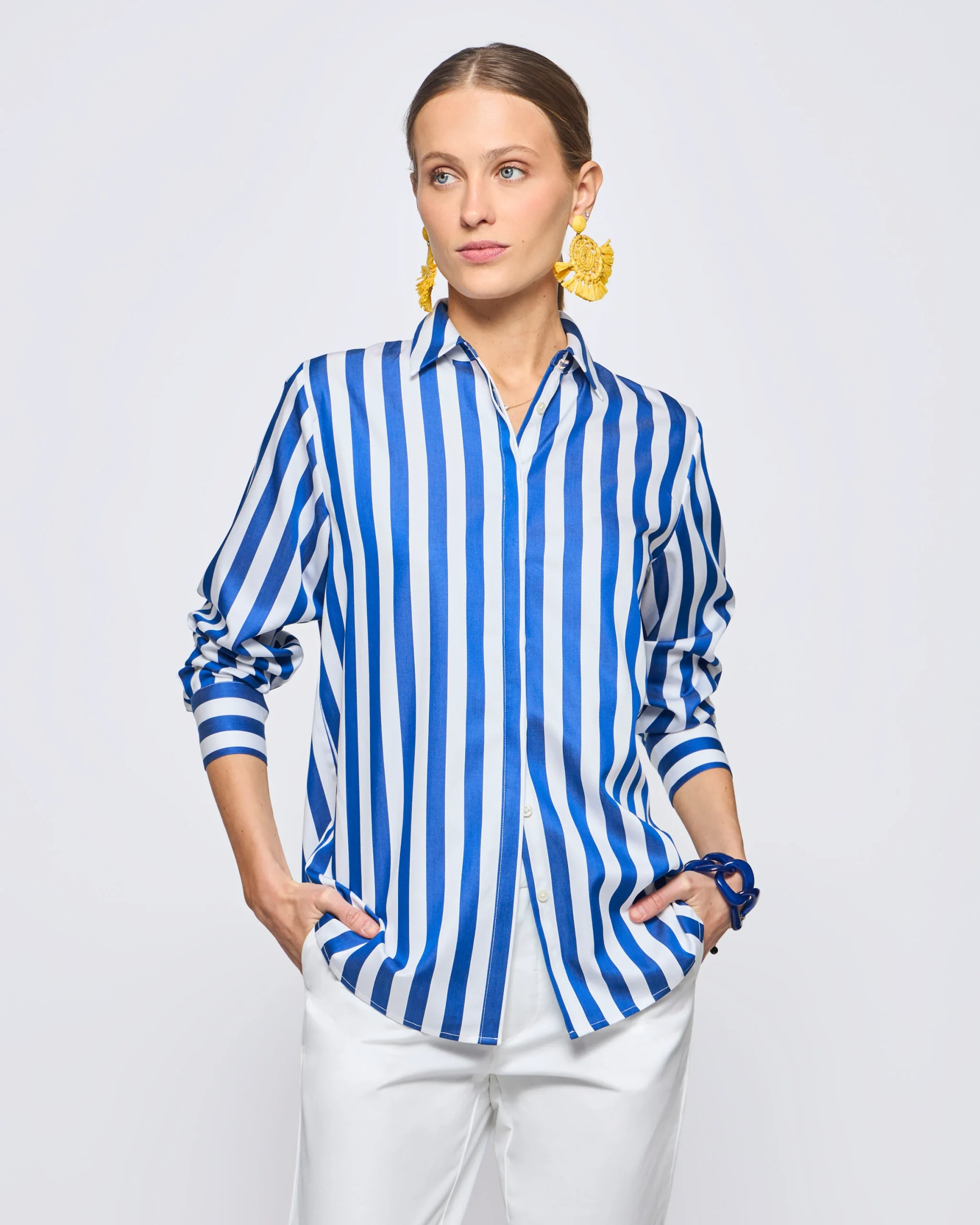 Camisa Manga Larga Rayada Algod贸n Tencel