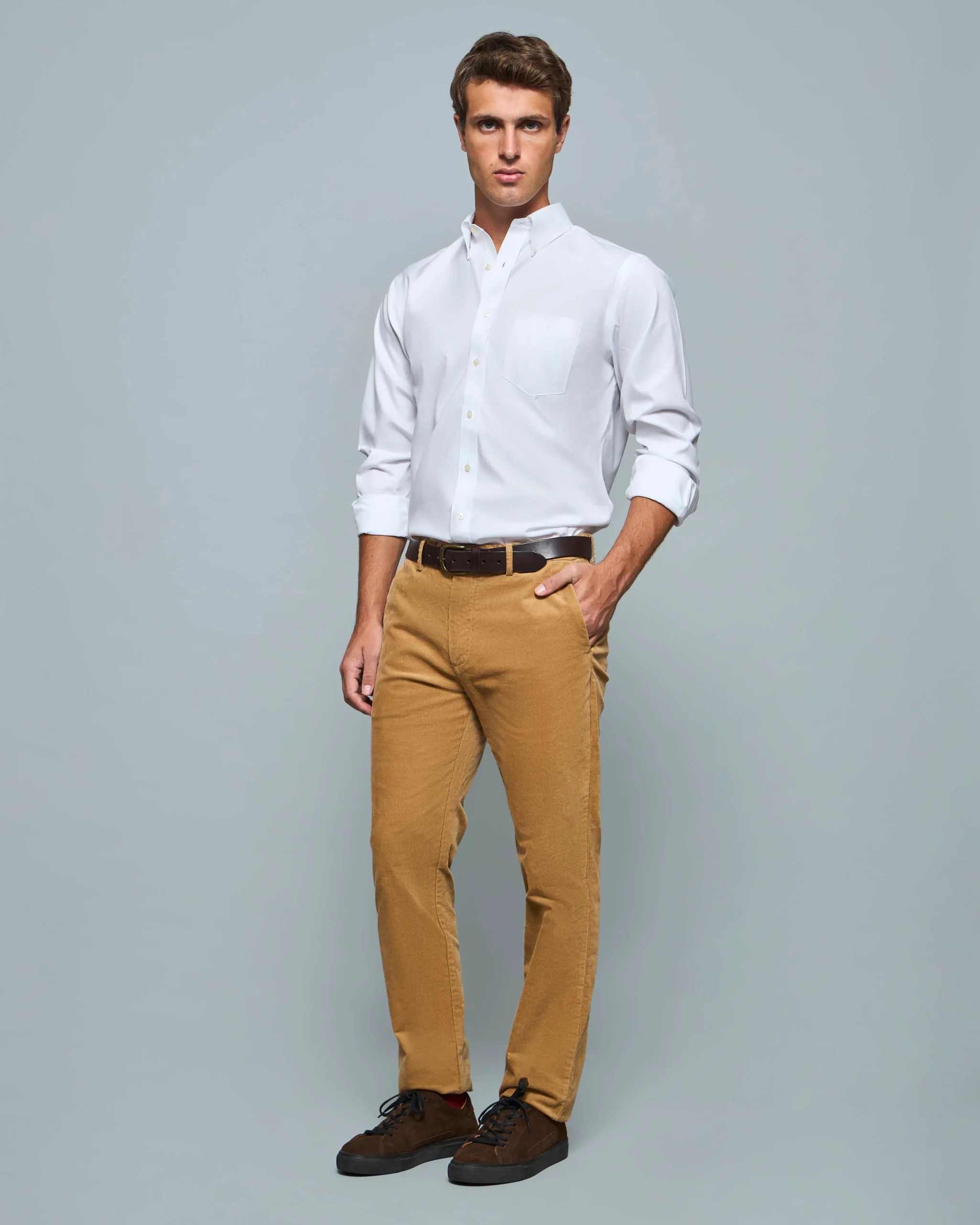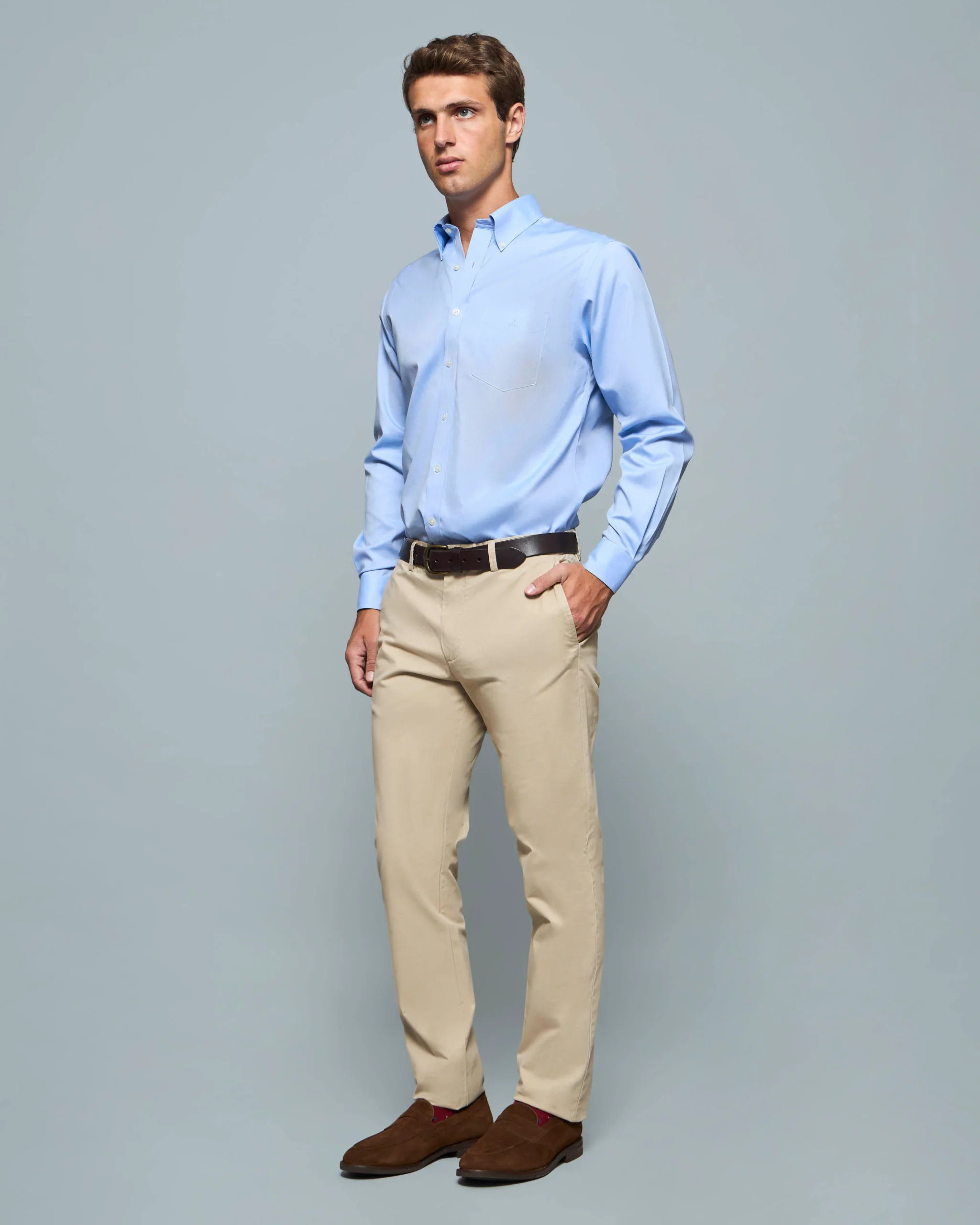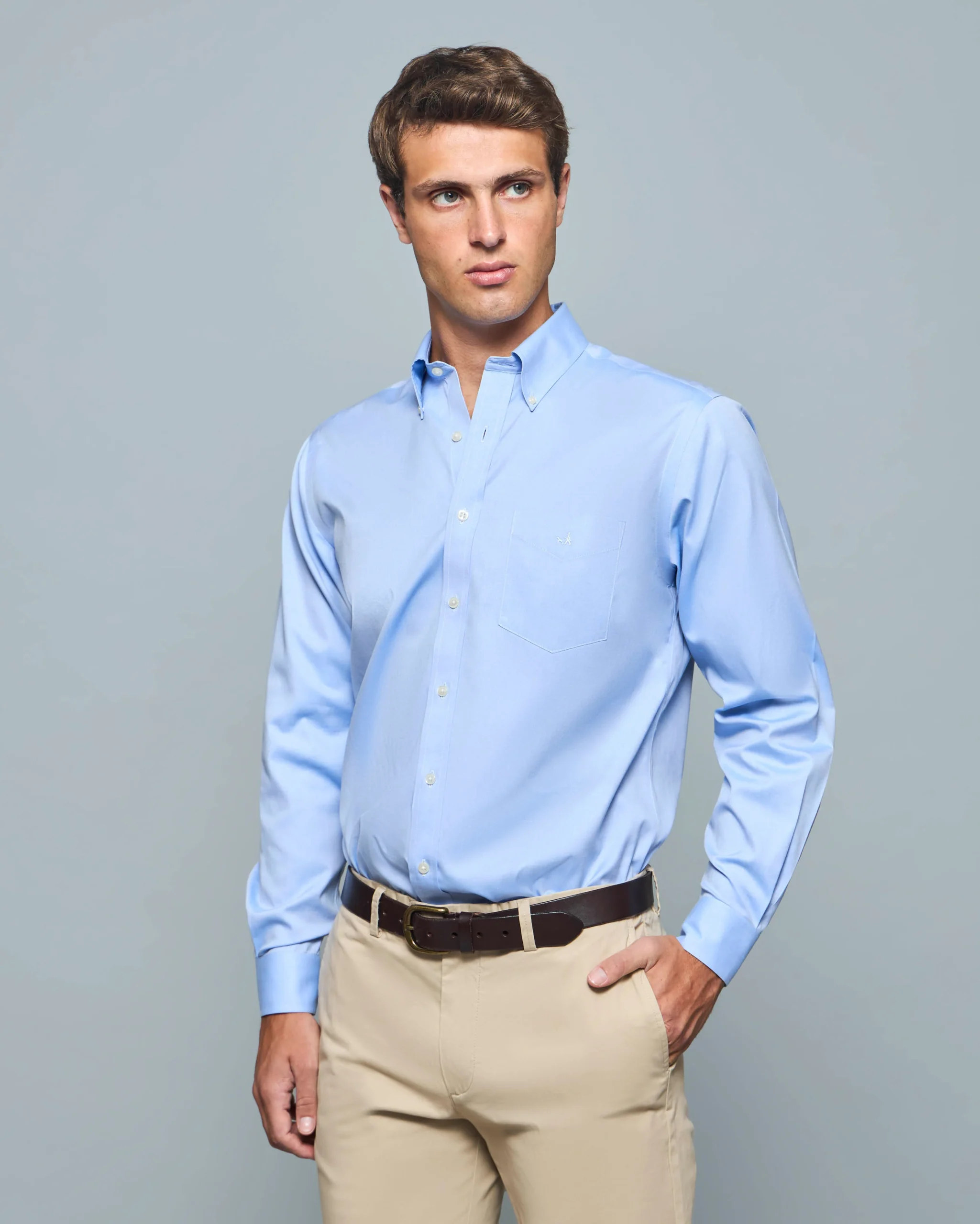 - Camisa Lisa con Cuello Button Down Algod贸n.