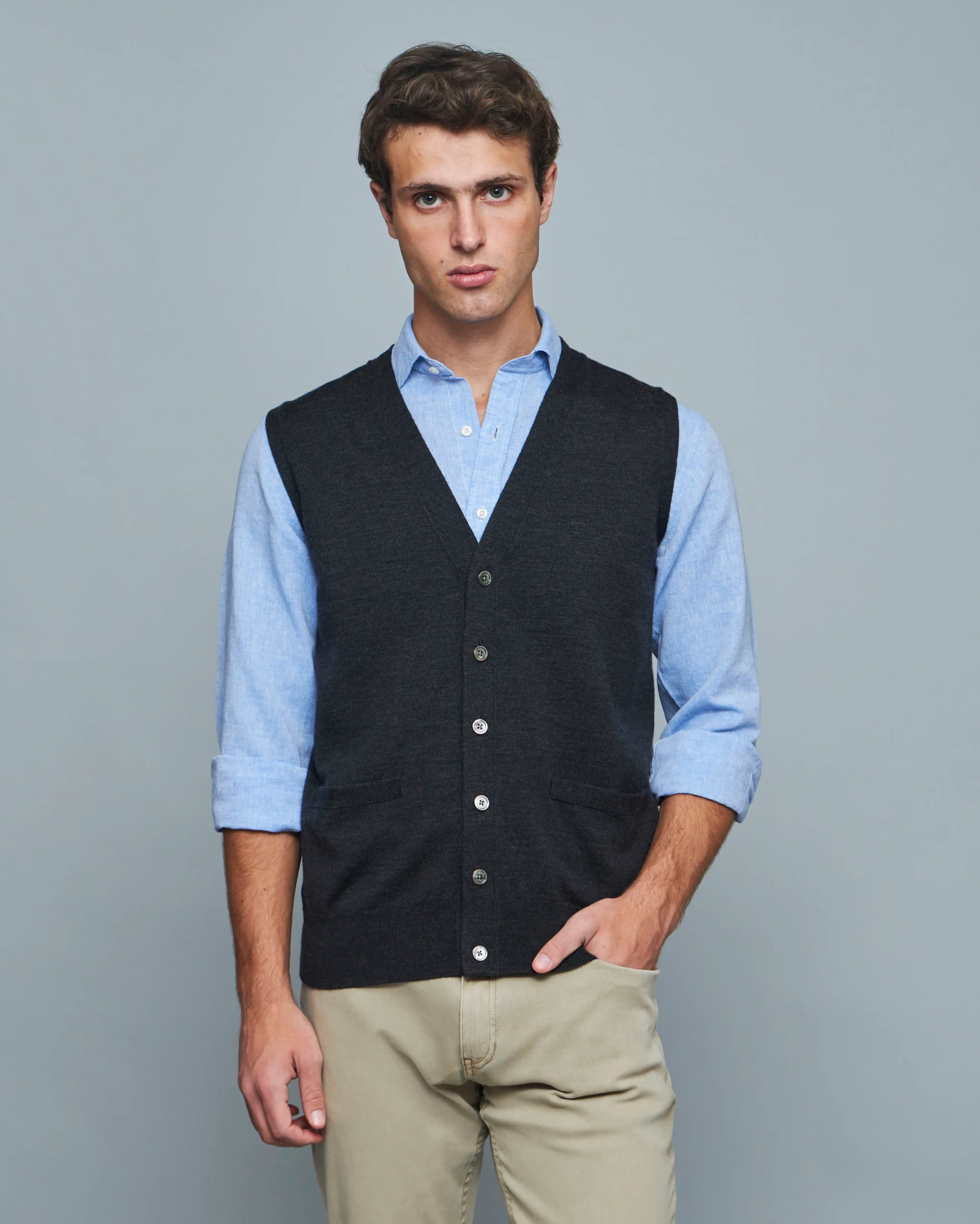Un sweater de excelente calidad de una de las mas prestigiosas hilanderías Italianas. Perfecto para usar en la oficina su gran nivel lo hace ver perfecto.