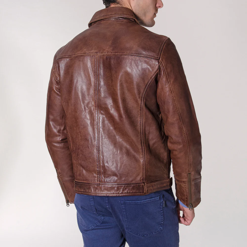Nuestra Cl谩sica Chaqueta de Cuero Vintage Traveler con un look espectacular y con Bolsillos de Parche.