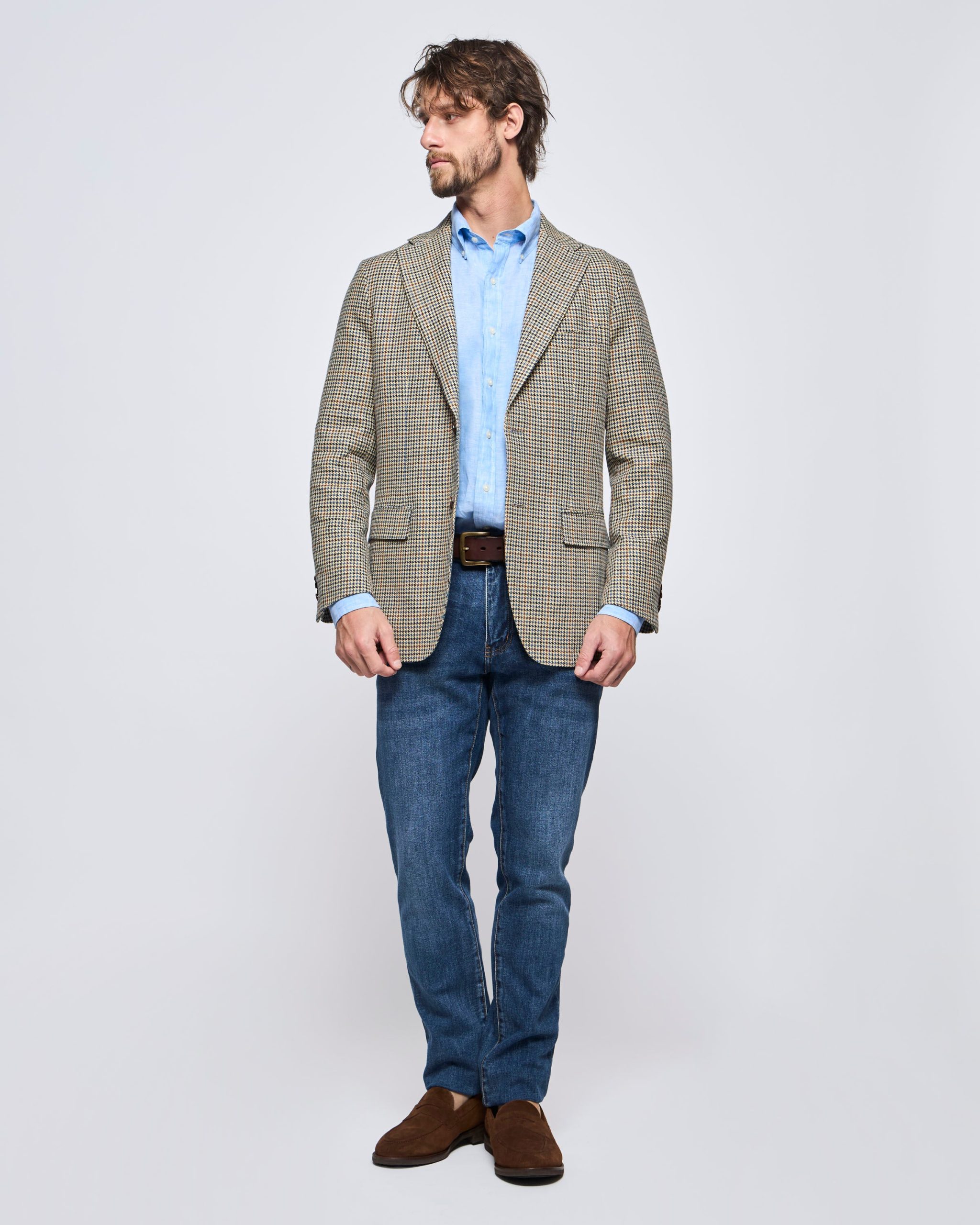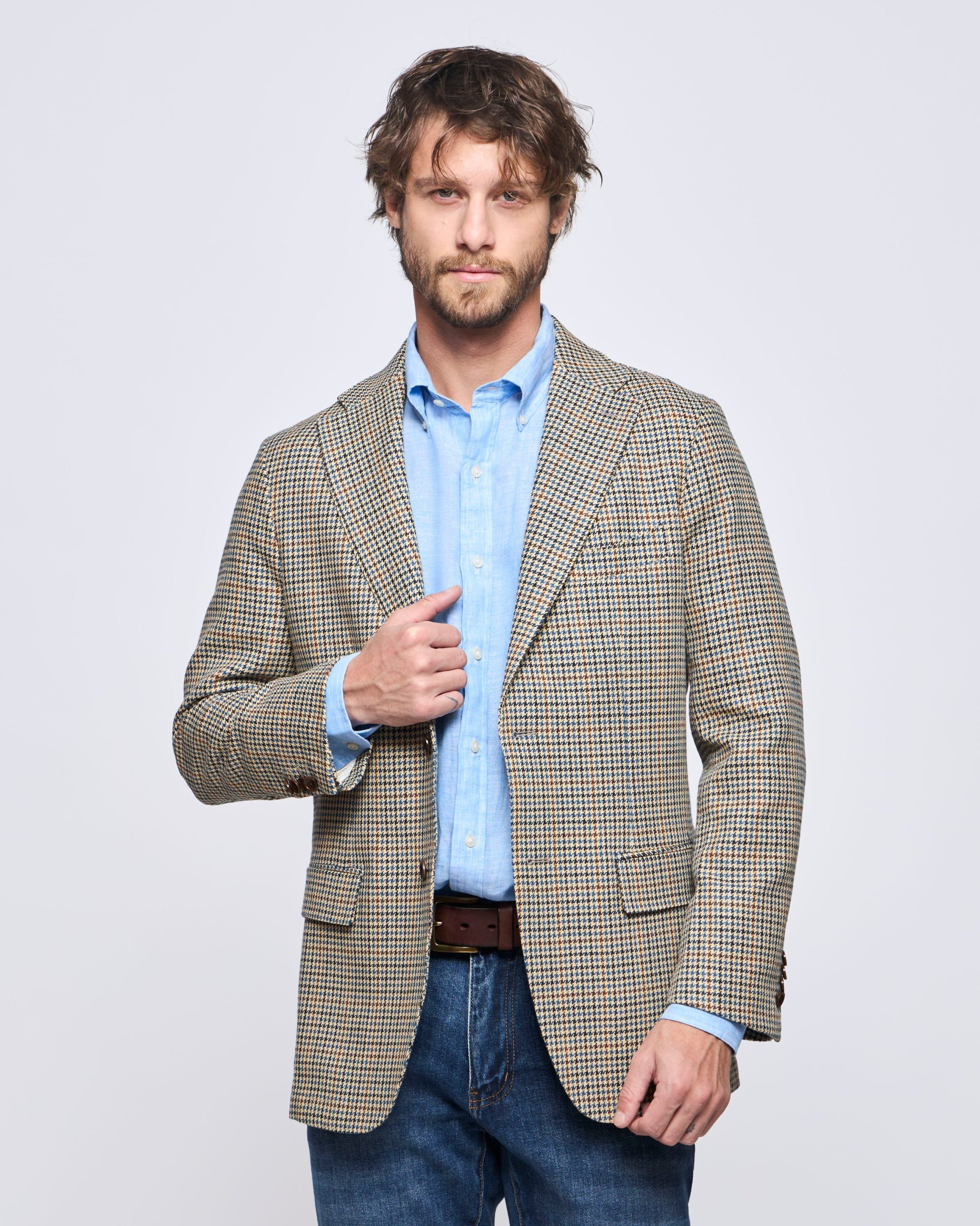 El dise帽o de Pata de Gallo surgi贸 en Escocia, probablemente en las Tierras Bajas, como una forma de identificar a aquellos que no estaban involucrados en las guerras de clanes. Con el tiempo, el patr贸n de pata de gallo se populariz贸 entre la nobleza y la burgues铆a inglesa, convirti茅ndose en un s铆mbolo de elegancia y sofisticaci贸n. Para esta Chaqueta hemos usado este dise帽o en una tela de Lino Algod贸n, que es fresca y elegante. Perfecta para todo tipo de ocasi贸n.