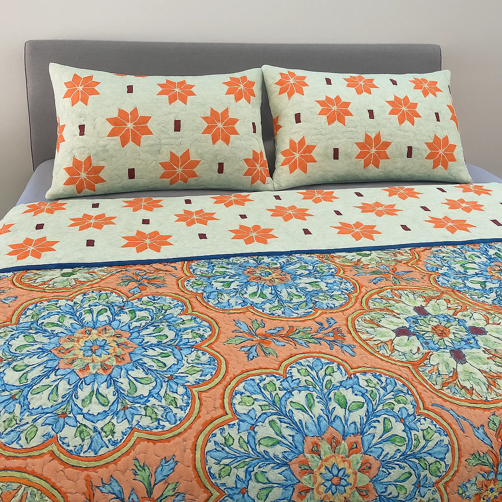 Este cubrelecho es una opción ligera, funcional y fácil de mantener, ideal para uso diario. Confeccionado en 100% poliéster y relleno con guata de 80 GSM, ofrece un abrigo suave sin exceso de peso. Su acabado termofijado evita desplazamientos del relleno y garantiza mayor durabilidad y uniformidad en el uso. Perfecto para climas templados y para espacios que requieren practicidad y confort.