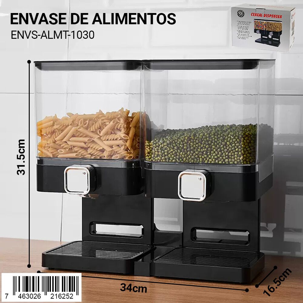 Práctico dispensador integrado. Ideal para cereales, pastas, snacks o alimentos a granel. Dosificación fácil y cierre hermético para máxima frescura.»