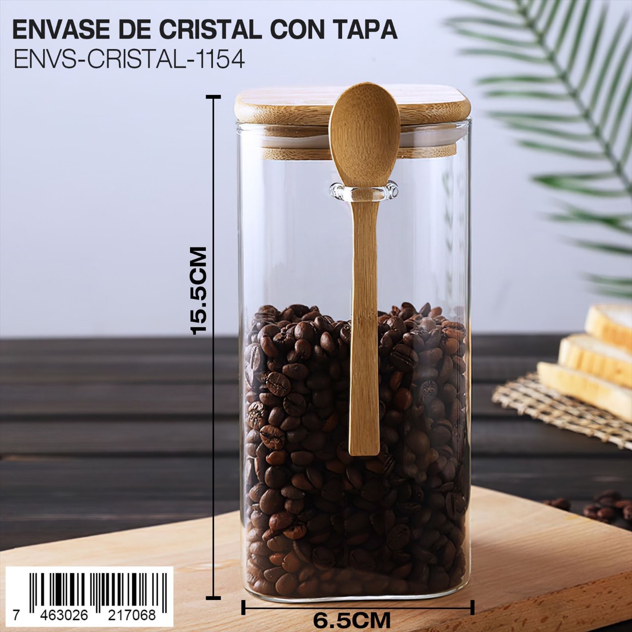 Tarro de vidrio hermético, Ideal para almacenar alimentos secos, líquidos o preparaciones, manteniendo la frescura y visibilidad de su contenido.