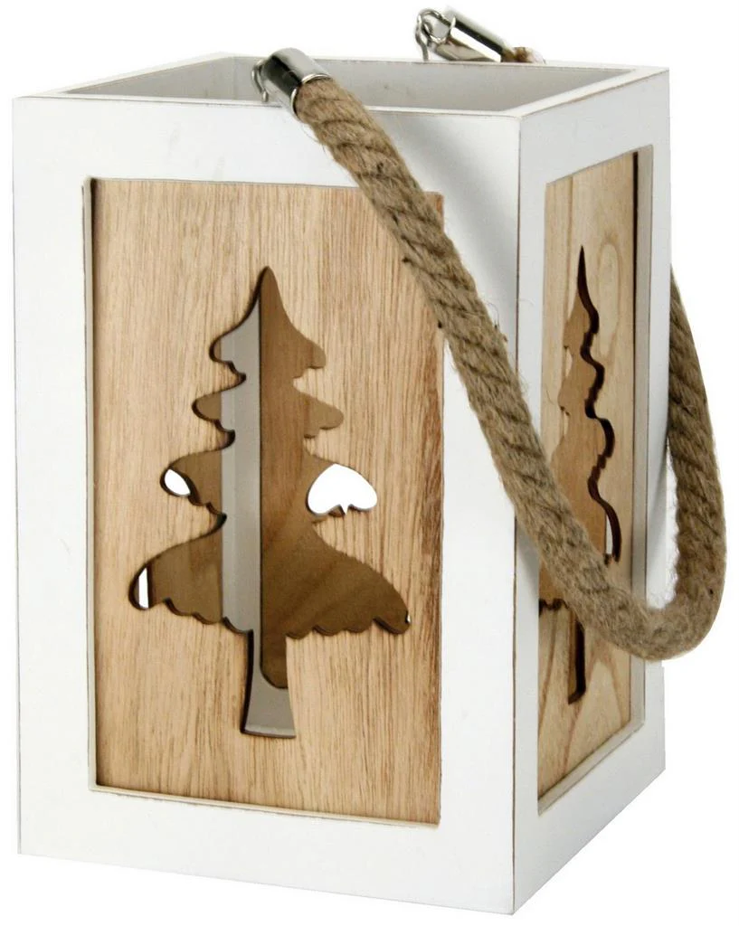 Farol de madera con decoración para utilizar en tu decoración navideña.