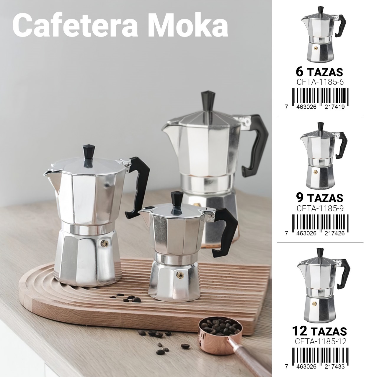 Esta cafetera moka es ideal para disfrutar de un café intenso y aromático en casa. Su diseño clásico en aluminio con mango ergonómico permite una preparación fácil y segura, perfecta para amantes del café que buscan calidad y tradición.