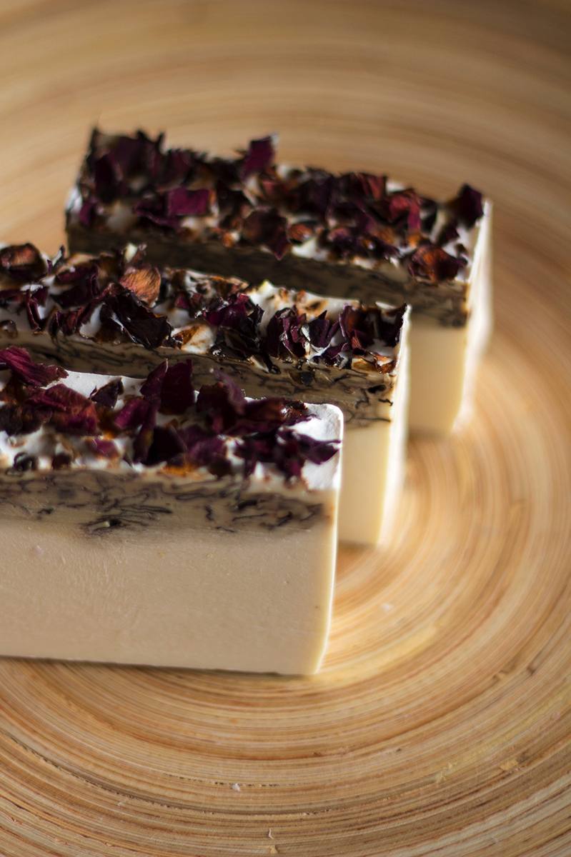 Jab贸n natural a base de aceite de oliva con aceite de rosas y decorado con p茅talos de rosas rojas. Perfecto para cuidar y consentir tu rostro o cuerpo. Queremos que cuides tu piel con los mejores ingredientes terap茅uticos y nutritivos.