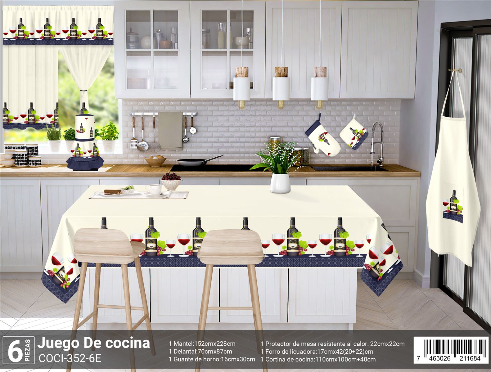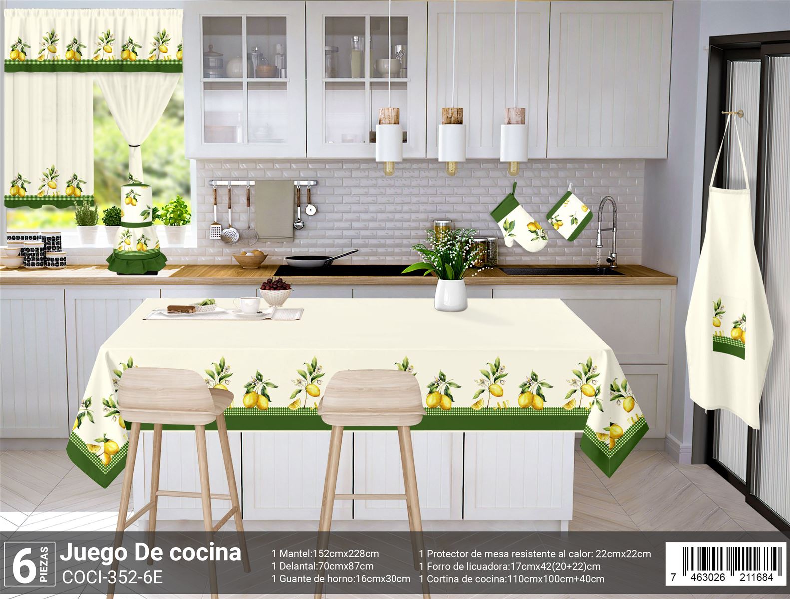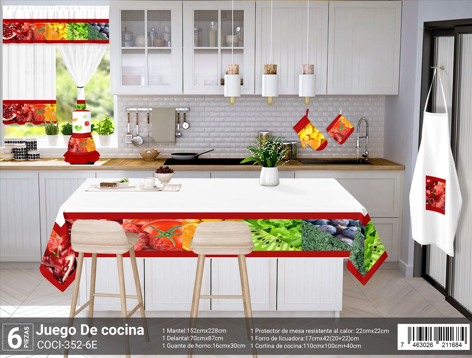 Ideal para dar un toque coordinado y funcional a tu cocina. Este set incluye piezas prácticas y decorativas que combinan estilo y utilidad, fabricadas con materiales resistentes para el uso diario.