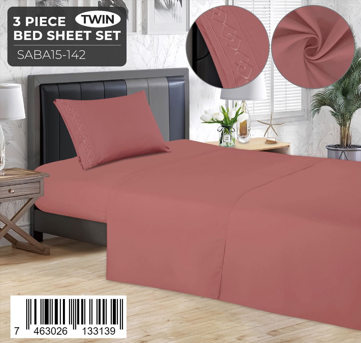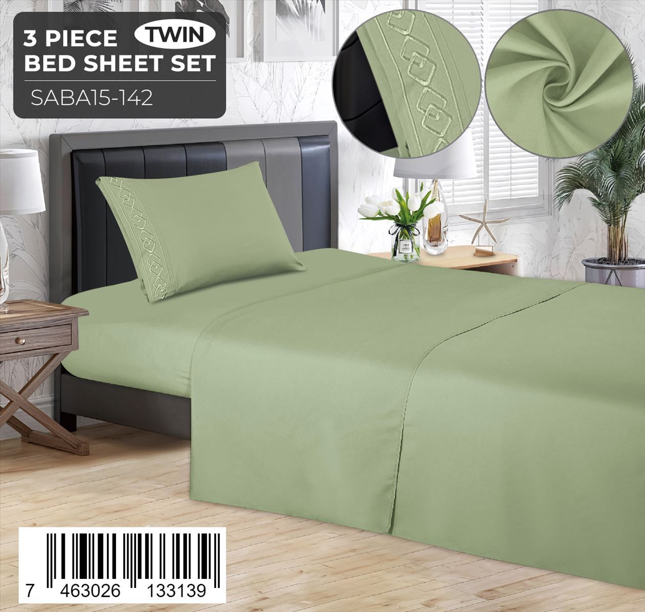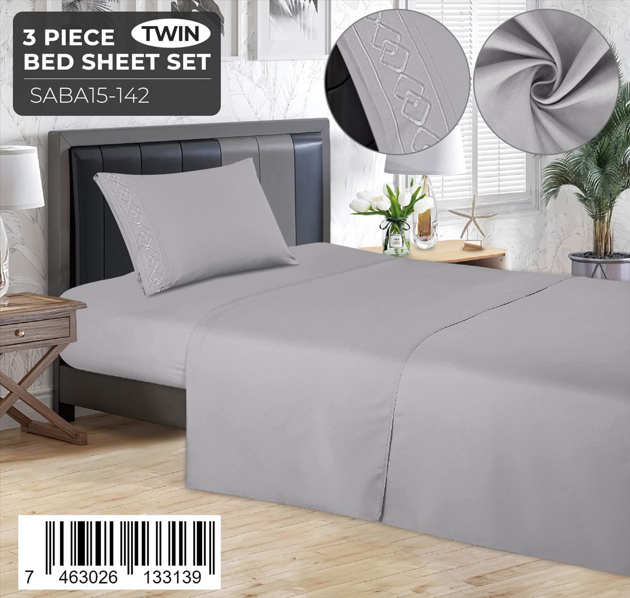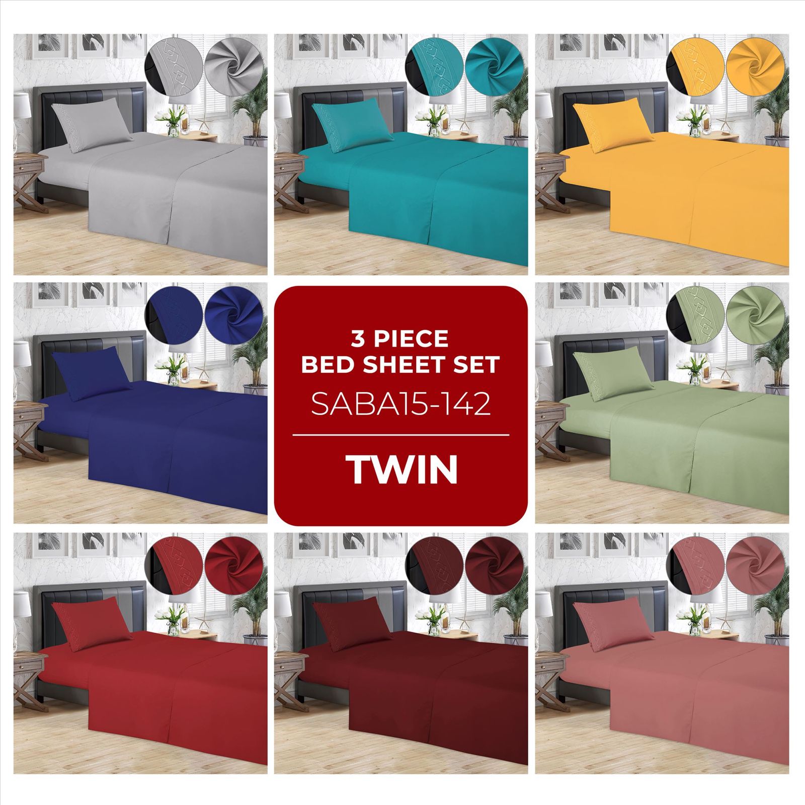 Juego de sábanas lisas de 3 piezas – Twin Size con detalle bordado