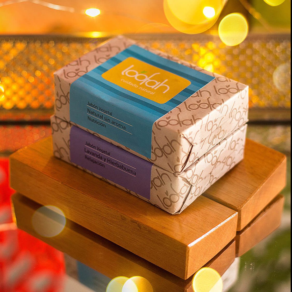 Kit jabonera en madera fabricada artesanalmente por manos Colombianas, con 2 jabones naturales a base de aceite de oliva.
