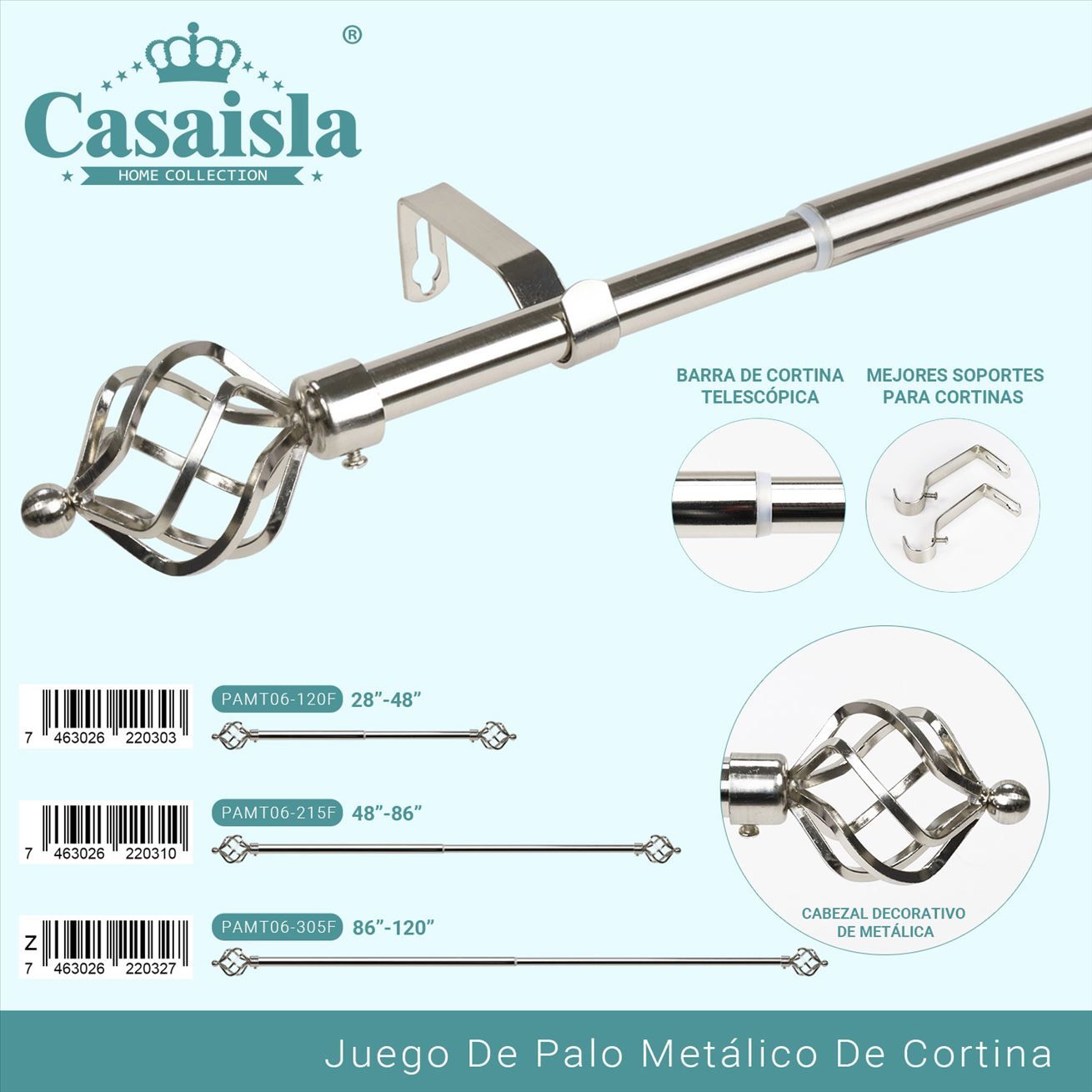 Este elegante juego de barra metálica para cortina es ideal para darle un toque moderno y sofisticado a cualquier espacio. Su diseño telescópico permite ajustarlo fácilmente al tamaño de tu ventana, mientras que las esferas decorativas en cristal aportan un acabado distintivo y elegante. Incluye soportes metálicos reforzados que garantizan una instalación firme y duradera.