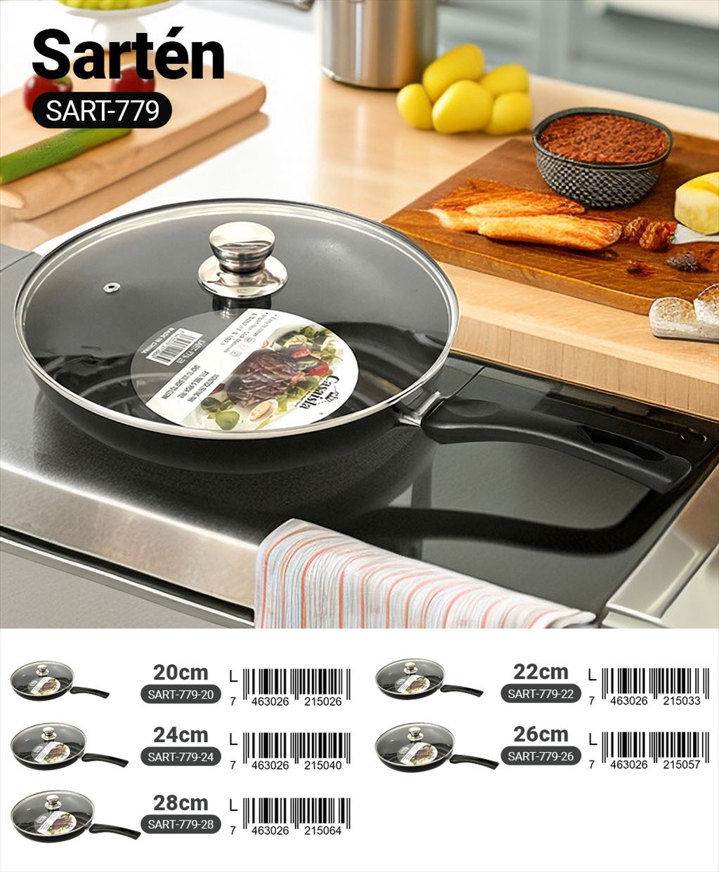 20 cm, 22 cm, 24 cm, 26 cm, 28 cm