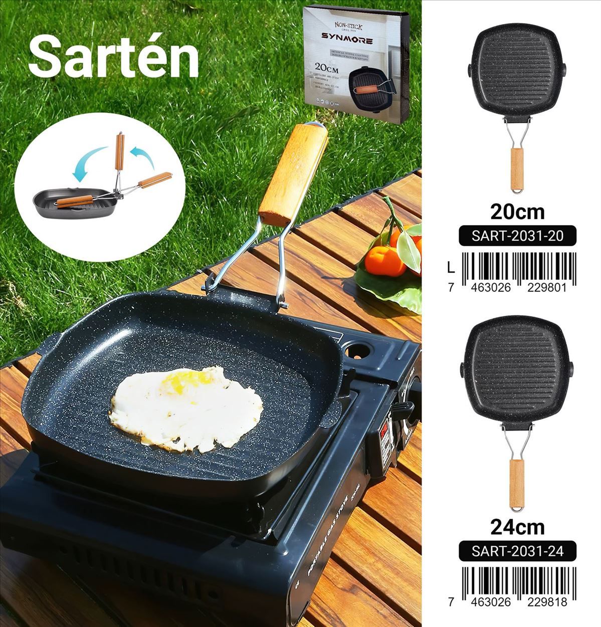 Práctica y funcional, esta sartén cuadrada antiadherente con mango de madera abatible permite cocinar de manera uniforme carnes, huevos, vegetales y mucho más. Su superficie acanalada tipo parrilla resalta el sabor y el sellado de los alimentos, además de ser fácil de usar y almacenar. Resistente y moderna, es una gran opción para la cocina diaria.