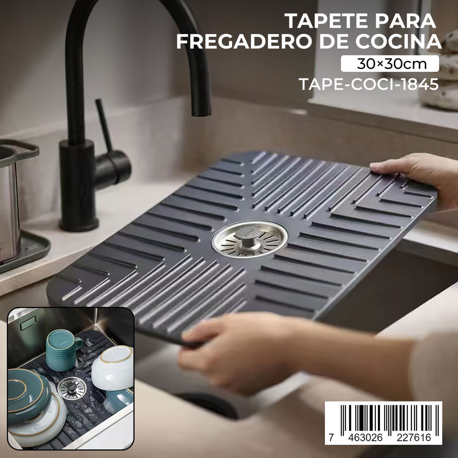 Ideal para mantener tu fregadero limpio y protegido, este tapete es perfecto para colocar platos, vasos y utensilios mientras se secan o se lavan. Su diseño con ranuras permite un drenaje eficiente del agua y evita salpicaduras,