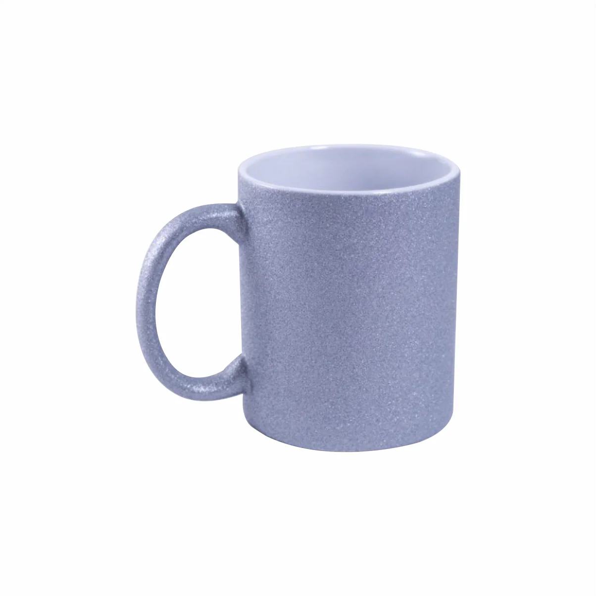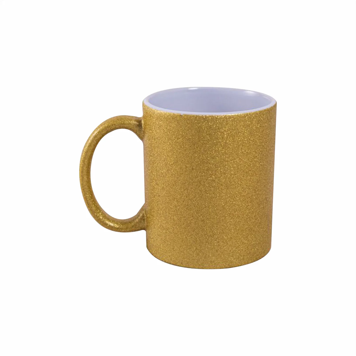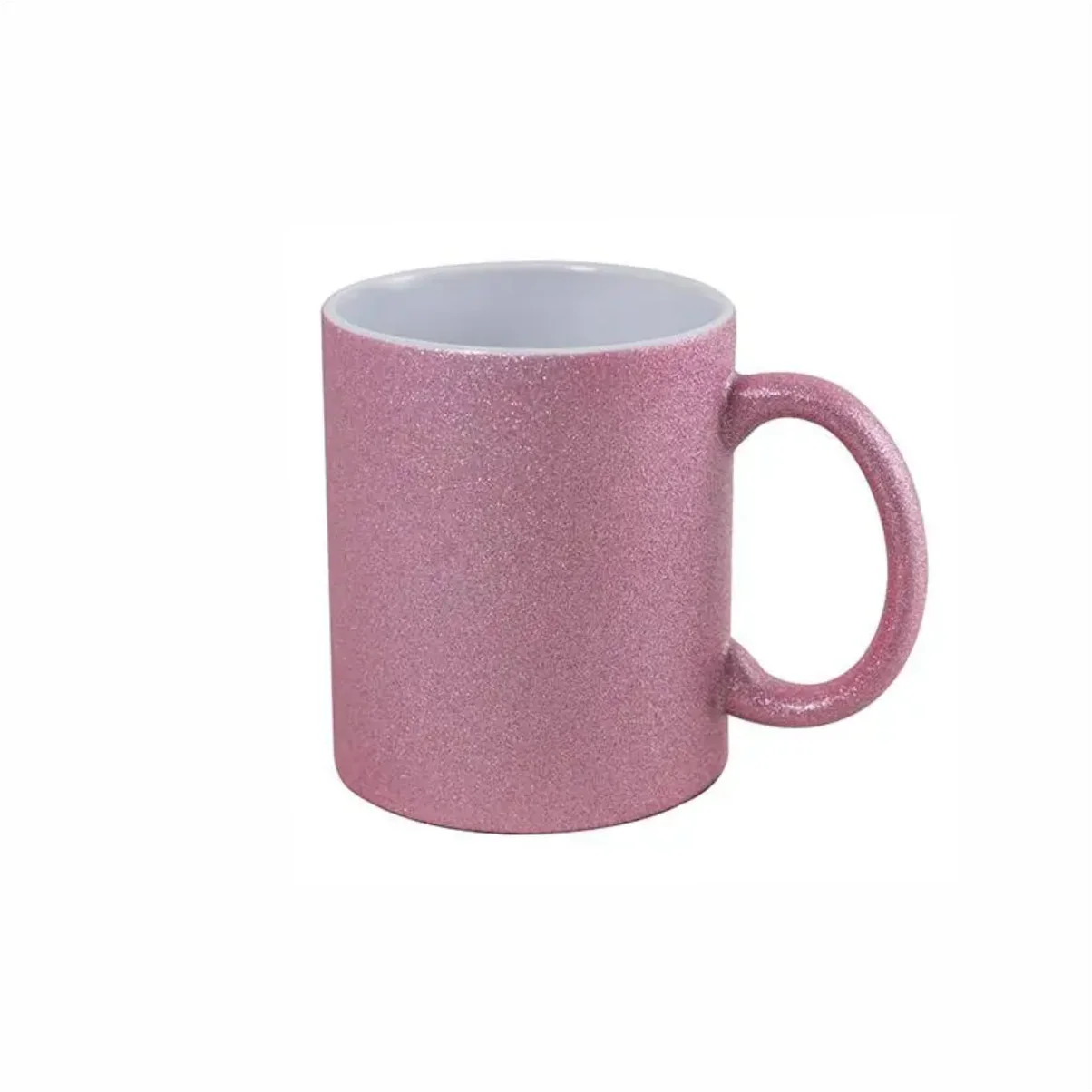 Taza de cer谩mica para sublimaci贸n con acabado brillantina rosa / dorada/ plata capacidad 325.30 ml / 11 oz.