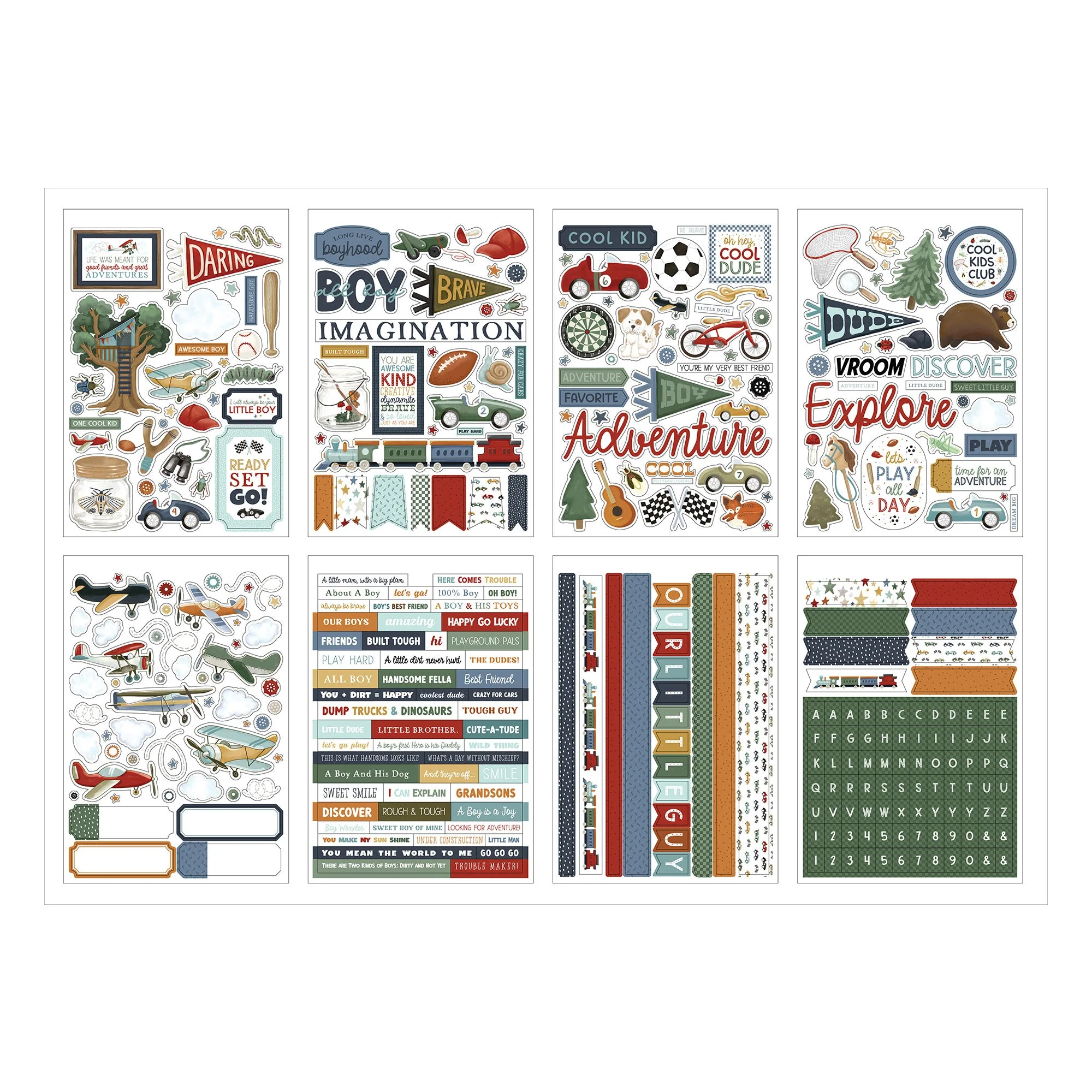 16 páginas de pegatinas de alta calidad. Cada libro contiene 2 hojas de cada diseño para decorar tus proyectos de scrapbooking y manualidades.