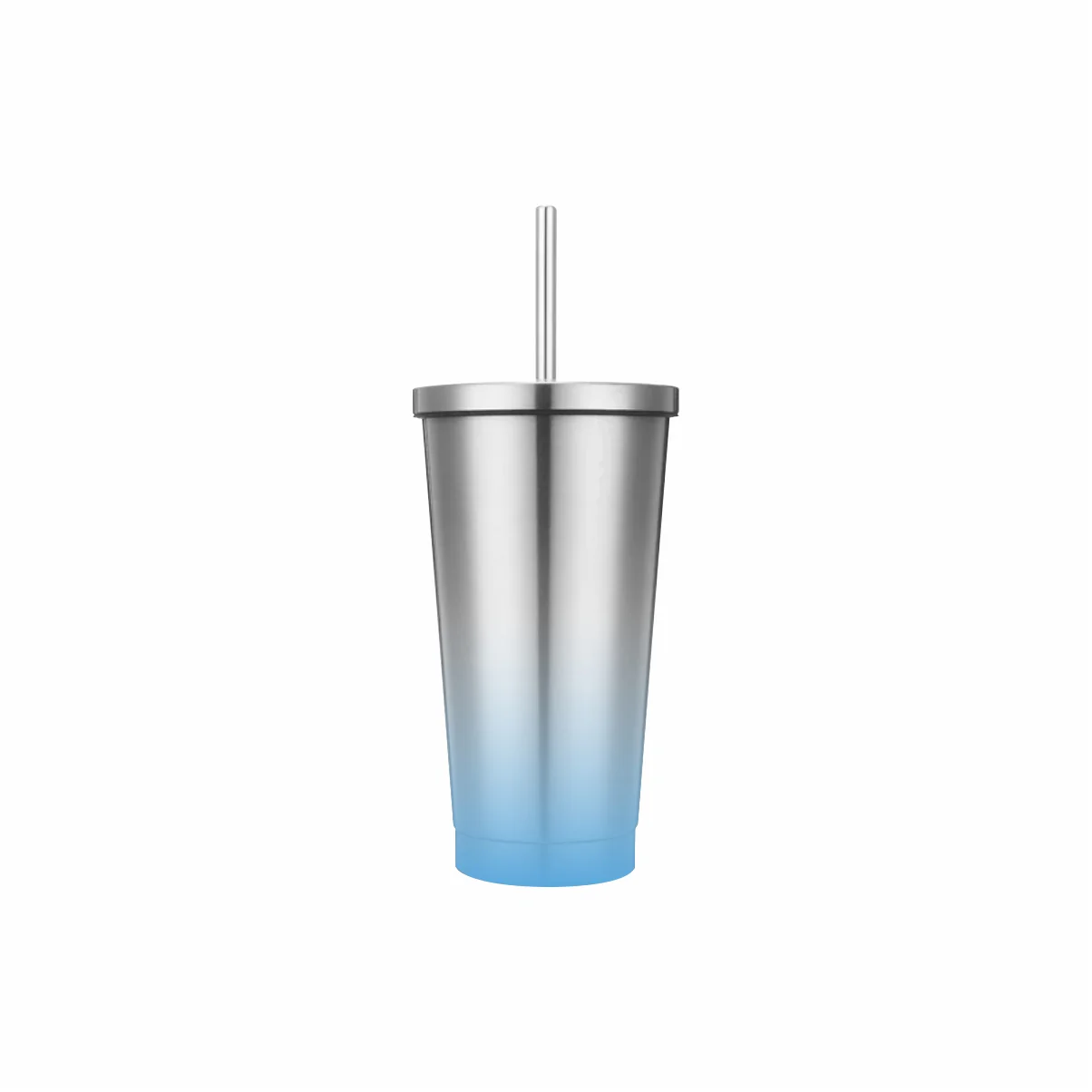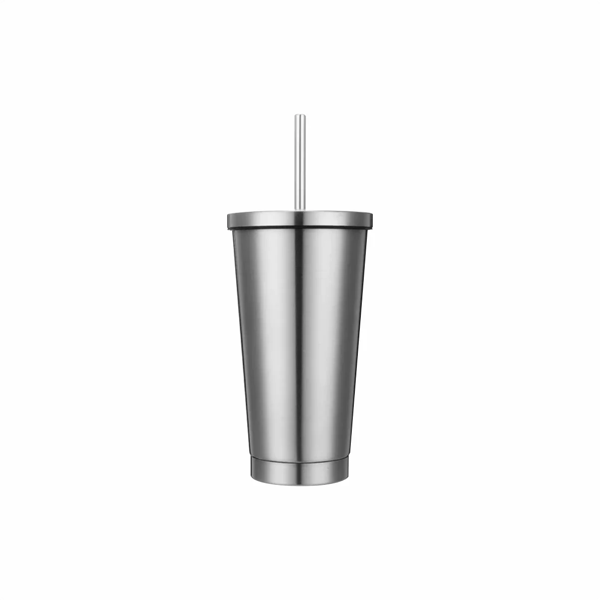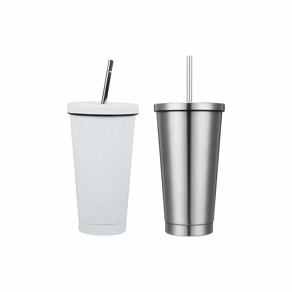 Vaso de acero inoxidable con popote de metal 473.17 ml / 16oz para sublimar