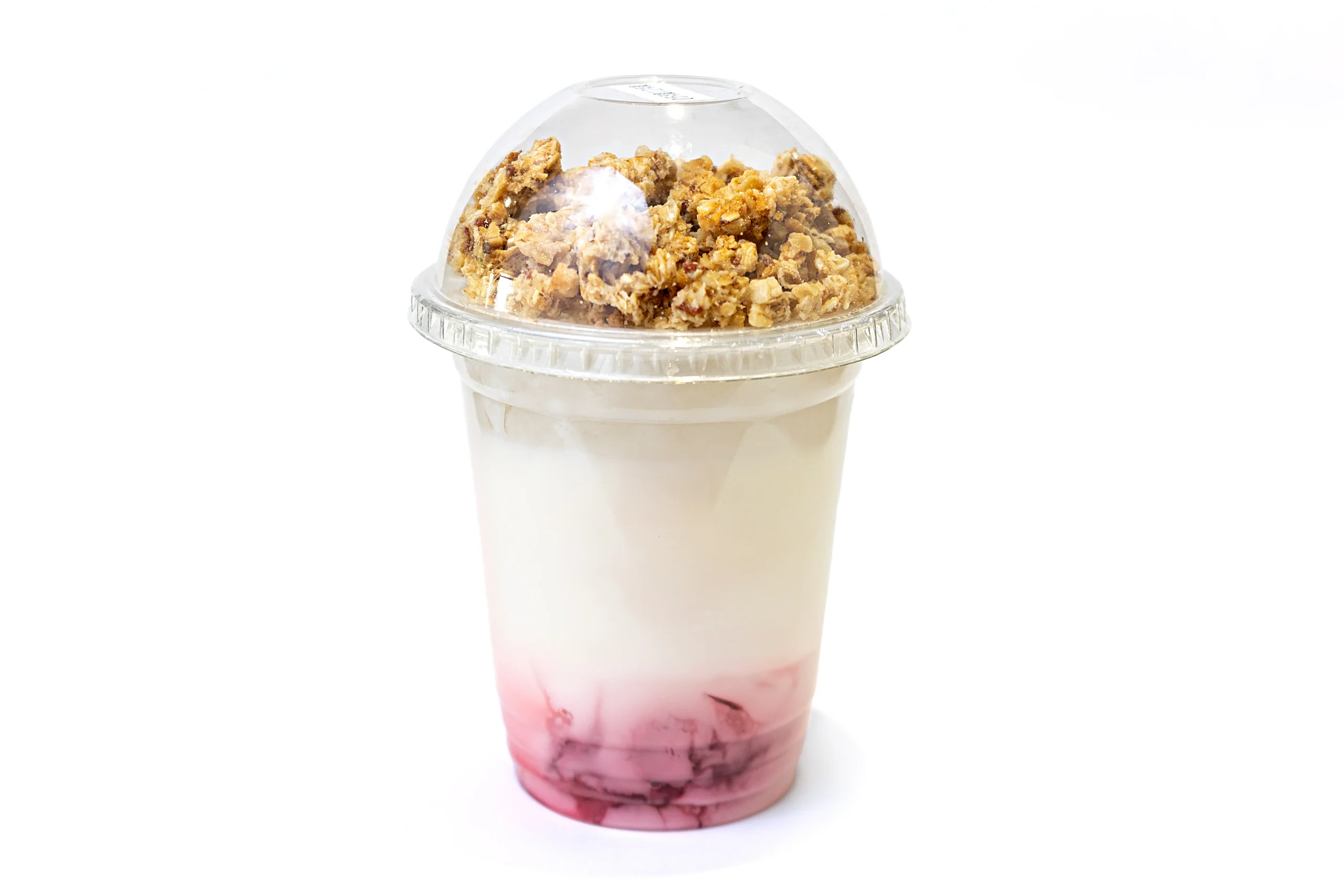Ingredientes: Yogurt natural endulzado light, mermelada de frambuesa y granola de berries.