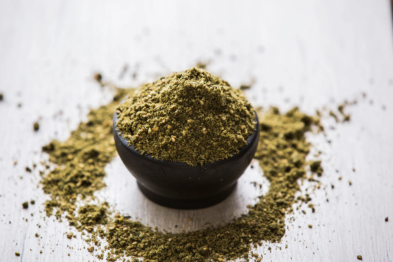 Esta mezcla de or茅gano, mejorana, cilantro, semillas de s茅samo, tomillo, comino, summak, pimienta negra y sal aporta mucho sabor a la comida, con notas tostadas, herbales, ligeramente picante y tostadas. Es muy utilizada en la cocina sirio-libanesa.