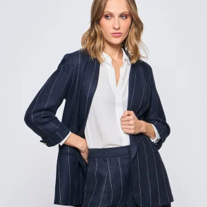 Blazer Lino Manga 3/4 Raya delgada Azul Blanco