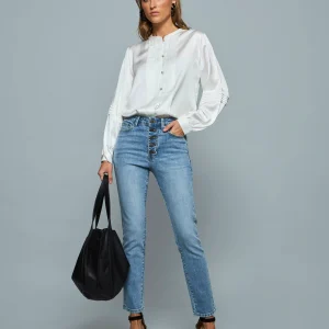 Jeans Skinny Botones Tiro Alto Pierna Ajustada