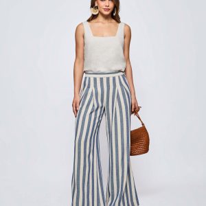 Pantalón Ancho Pinzas Rayas Ancha Azul