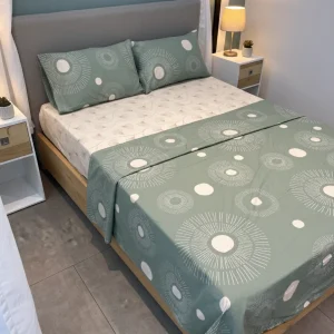 Juego de sábana 144 hilos estampado Azul Grisaceo