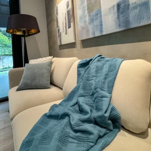 Cobija Galleta 100% Algodón Color Azul Humo