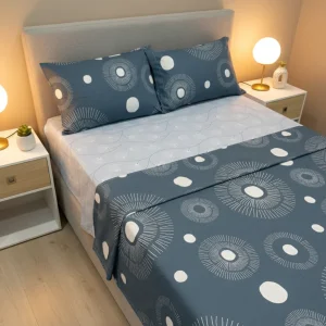 Juego de sábana 144 hilos estampado Azul Grisaceo