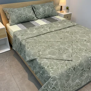 Juego de sábana 144 hilos estampado Verde