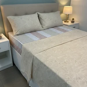 Juego de sábana 144 hilos estampado beige