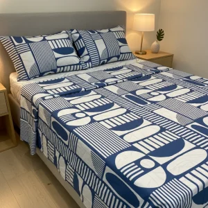 Juego de sábana 144 hilos estampado Azul